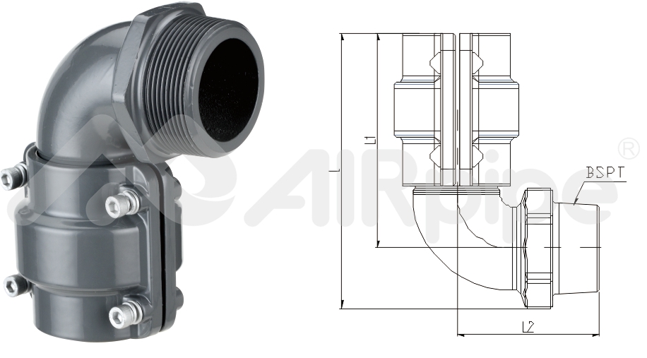 AIRpipe管对管接头的范围提供了多样的设计, 帮助克服在工业建筑结构中经常碰到的配管限制